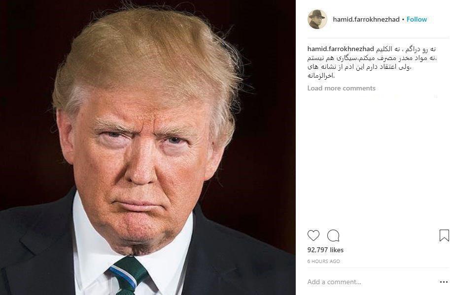 حمید فرخ نژاد در اینستاگرام خود نظر عجیبی درباره دونالد ترامپ اظهار کرده است.