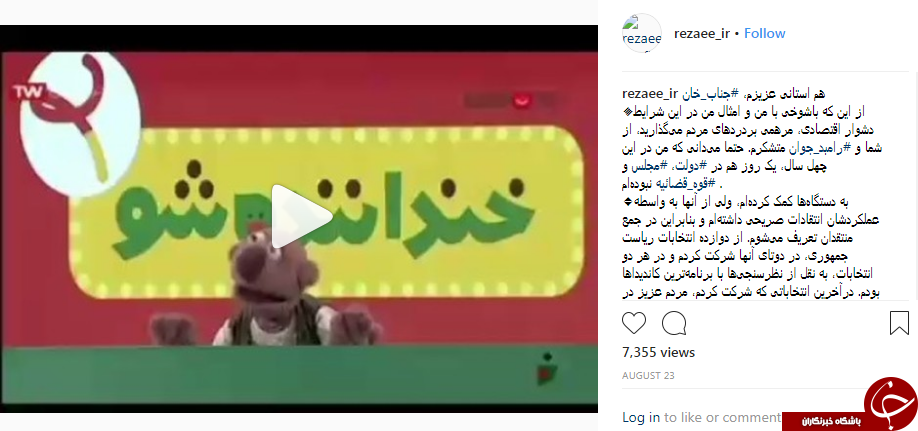 تشکر اینستاگرامی محسن رضایی از جناب خان و رامبد جوان