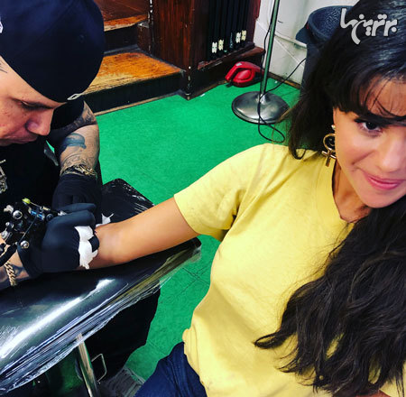 سلنا گومز، در این عکس، دست خود را برای طراحی و خالکوبی به یک طراح سپرده است.