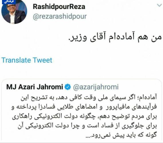 رضا رشیدپور پاسخ وزیر ارتباطات را داد: "من هم آمادهام آقای وزیر"