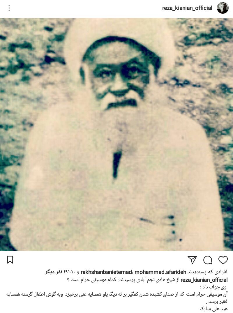 تبریک عید غدیر توسط کیانیان و نقل قولی جنجالی و جالب از یک روحانی درباره موسیقی حرام
