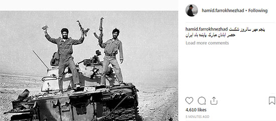 حمید فرخ نژاد در اینستاپستش نوشت: پنجم مهر سالروز شکست حصر آبادان مبارک .پاینده باد ایران.