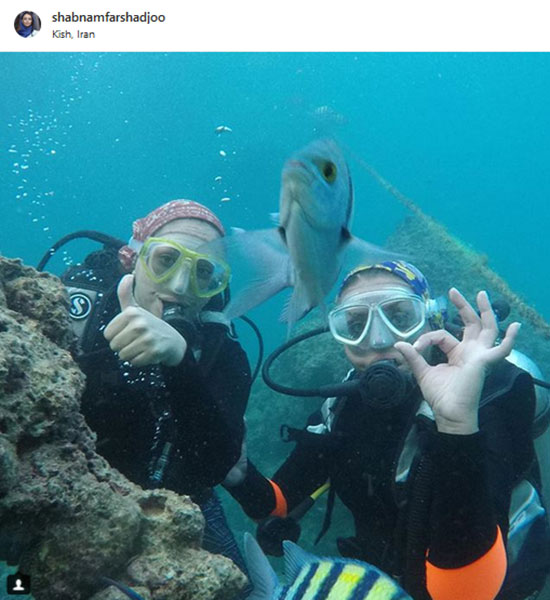 شبنم فرشادجو عکسی از خود و هانیه توسلی را در اعماق آبهای خلیج فارس در صفحه اش منتشر کرد.