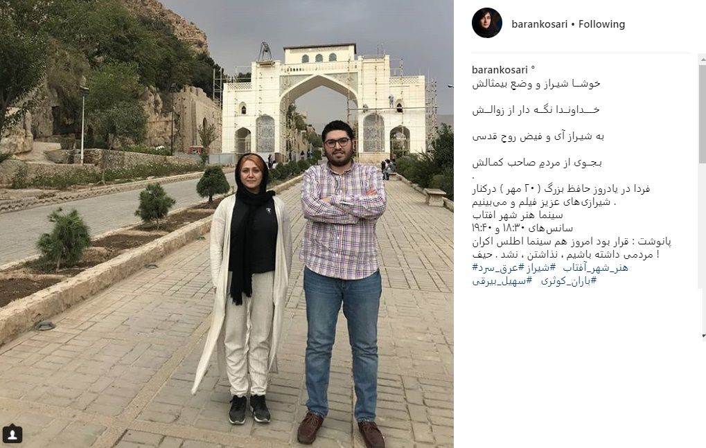 باران کوثری پس از لغو اکران فیلم «عرق سرد» در مشهد، به همراه سهیل بیرقی به شیراز سفر کرد.
