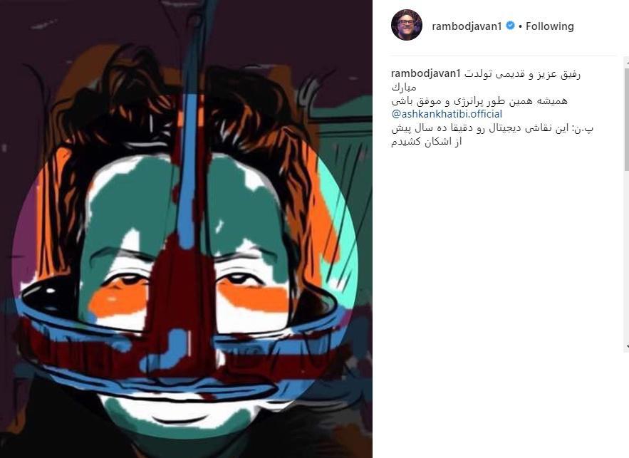 نقاشی دیجیتالی رامبد جوان از اشکان خطیبی را که به مناسبت تولد او منتشر کرده است را ببینید. جوان این نقاشی را 10 سال پیش از خطیبی کشیده بود.