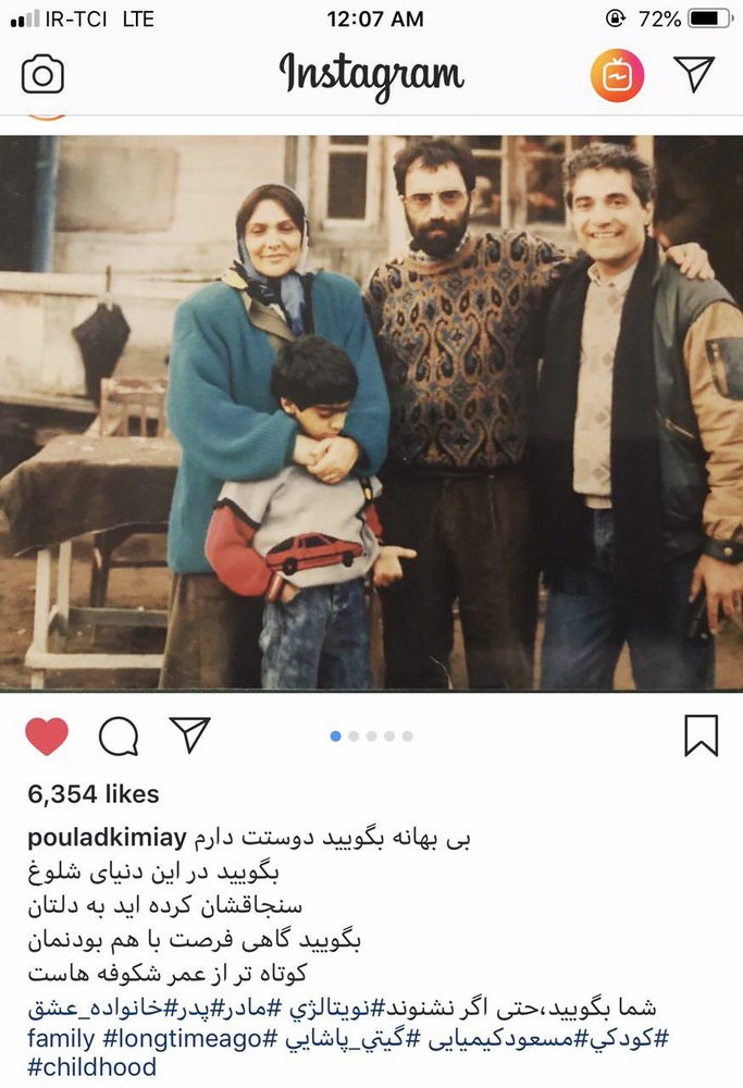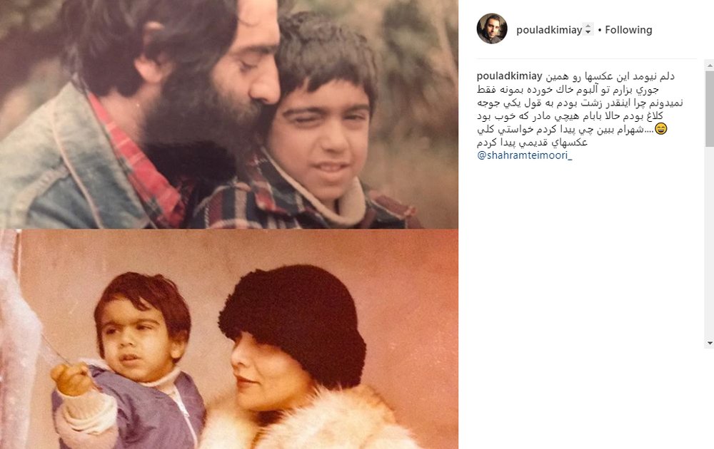 پولاد کیمیایی، بازیگر و کارگردان سینمای ایران، در روزهای گذشته تصاویری قدیمی از کودکی خود را کنار پدرش مسعود کیمیایی و مادرش گیتی پاشایی (خواننده و بازیگر) در اینستاگرام به اشتراک گذاشته است.