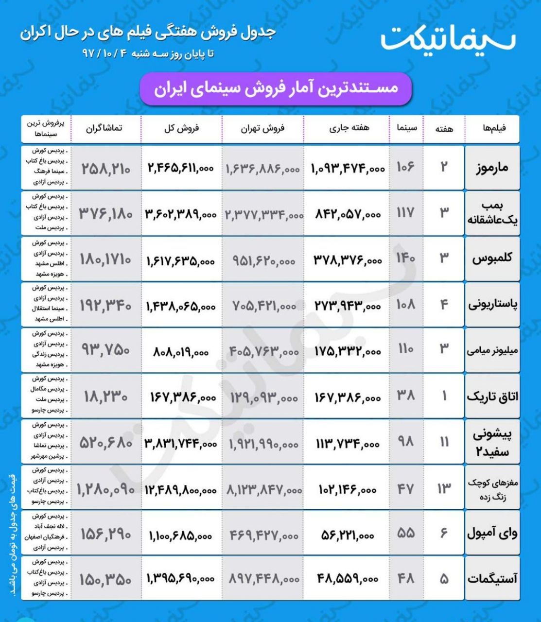 خبرفوری فرهنگی سینما و تئاتر ۵ دی ۱۳۹۷ ۲۱:۵۹ جدول فروش فیلم های روی پرده تا ۴ دی ماه جدول فروش فیلم های روی پرده تا ۴ دی ماه: کپی شد کدخبر: 762799 ت ت منبع: خانه هنرمندان 1981 سینما آمار فروش فیلم های سینمایی کپی شد با دوستان خود به اشتراک بگذارید: