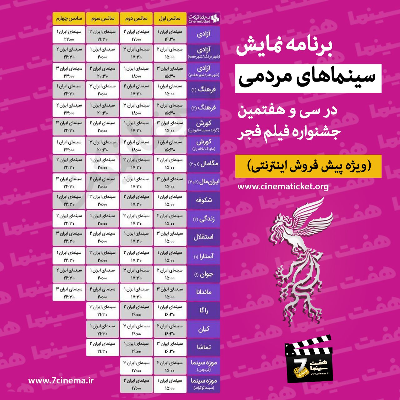 برنامه نمایش سینماها در جشنواره فیلم فجر