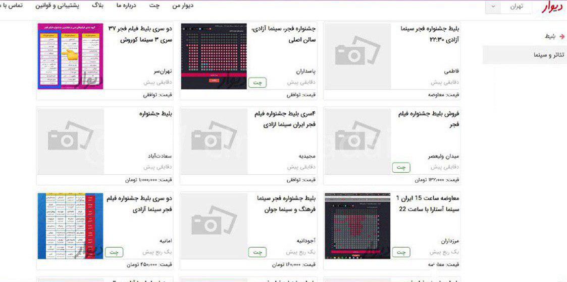 با نگاهی به سایت دیوار میتوان به رقمهای چندبرابری بلیتهای جشنواره فیلم فجر رسید؛