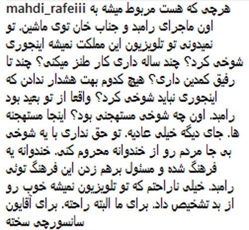 رامبد جوان، با چند جمله مختصر و کوتاه خبر پایان برنامه را اعلام کرد و نوشت: