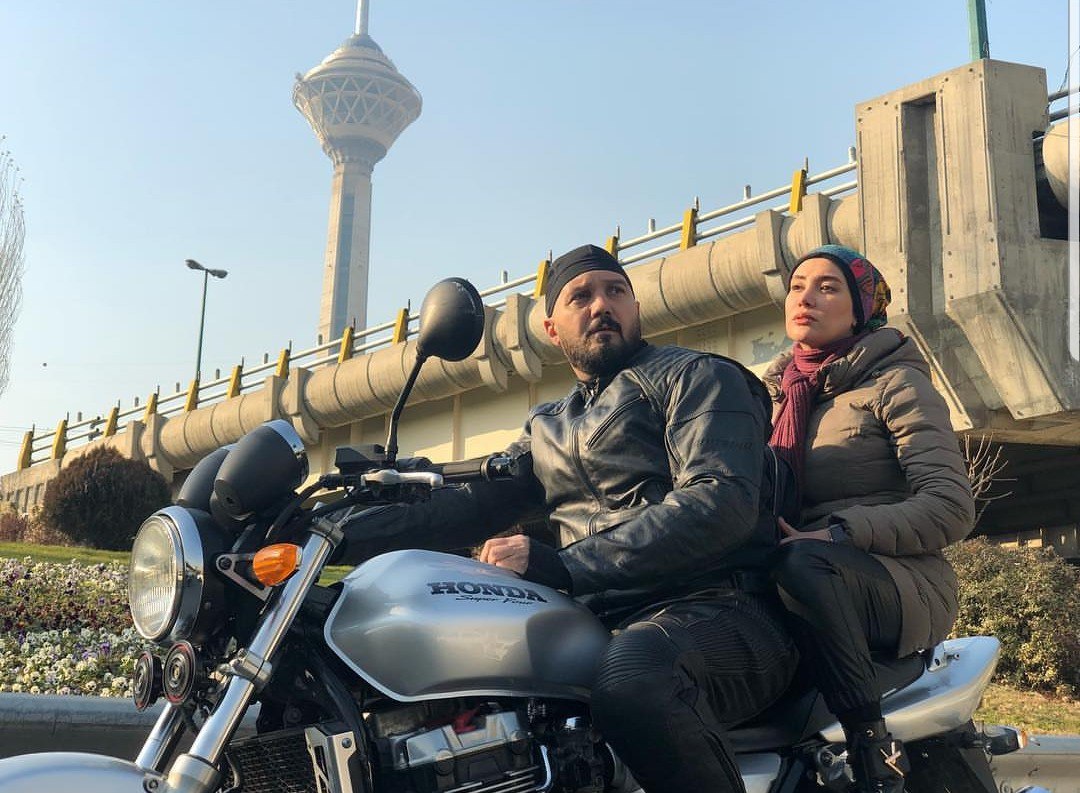تصویری از موتور سواری بهاره افشاری و کامبیز دیرباز در فیلم