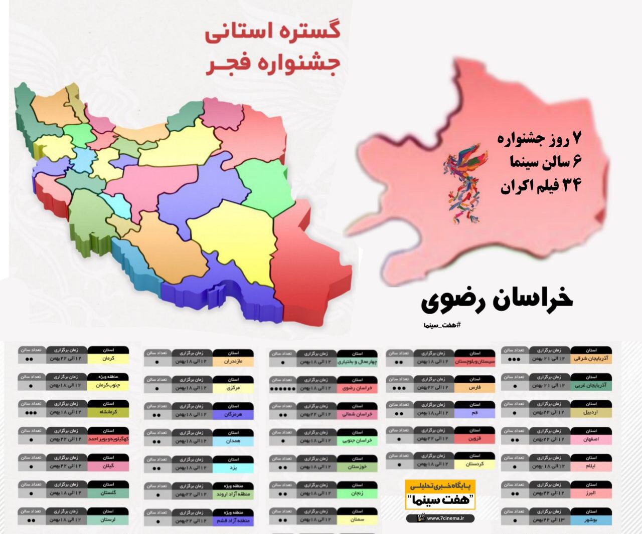 اینفوگرافی/مشهد دومین رتبه اکران فیلم جشنواره فجر را کسب کرد