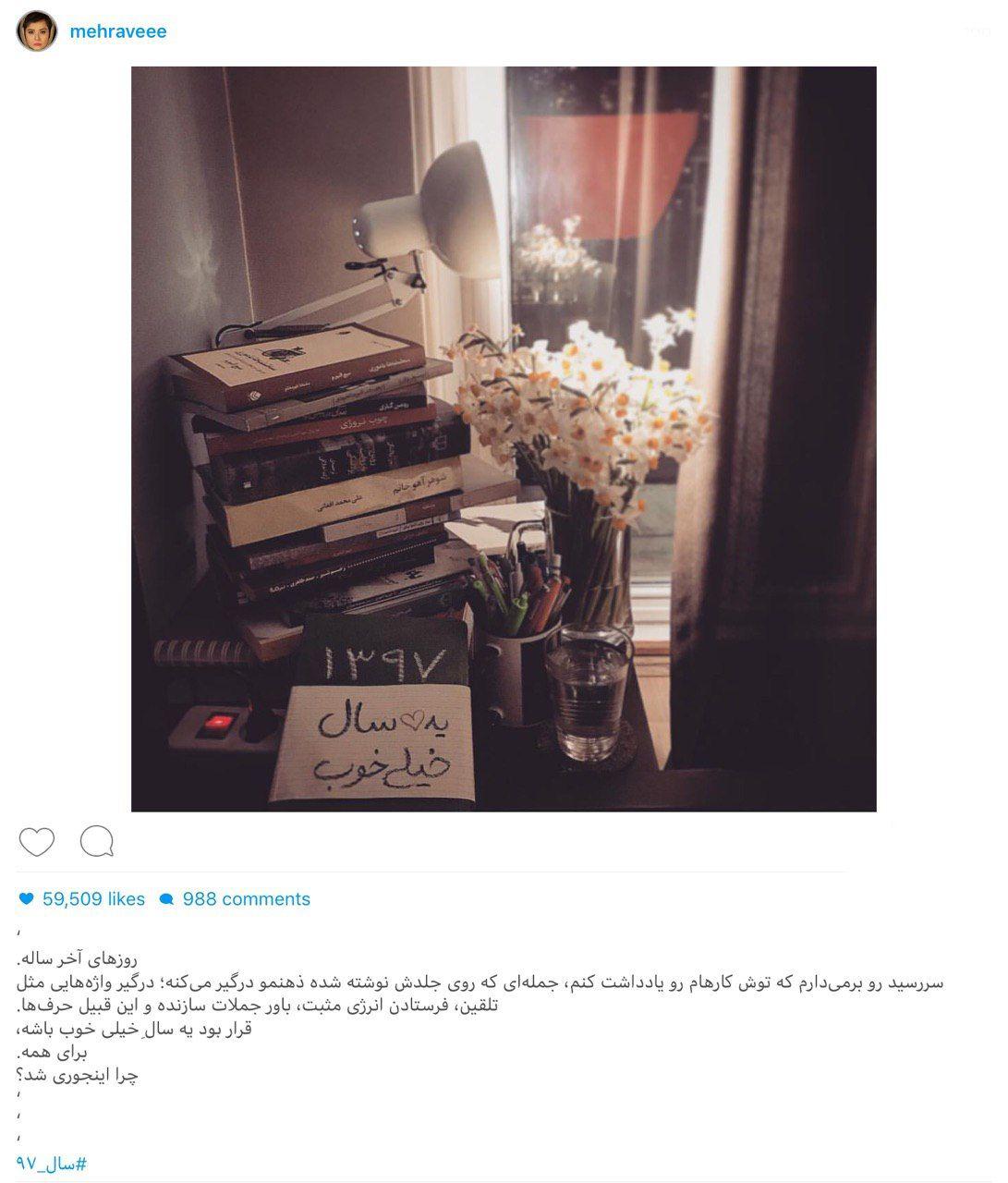 مهراوه شریفی نیا بازیگر تلویزیون پستی معنادار در اینستاگرامش در آخرین روزهای سال 97 منتشر کرد.