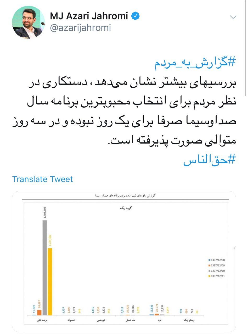 افشاگری جدید وزیر ارتباطات علیه رسانه ملی: دستکاری کردن آرای مردمی، در سه روز متوالی انجام شده است.