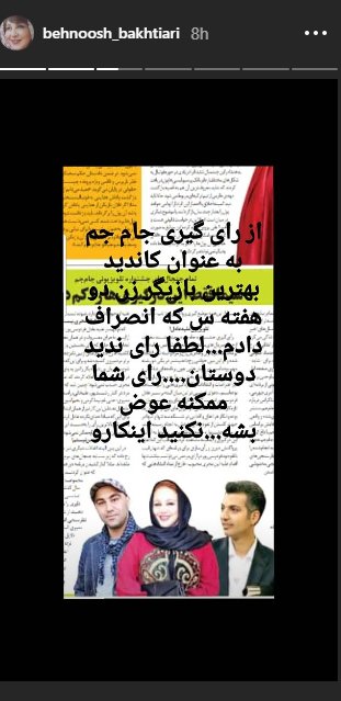 بهنوش بختیاری از مخاطبان خود درخواست کرد تا در رایگیری جشنواره جامجم شرکت نکنند.
