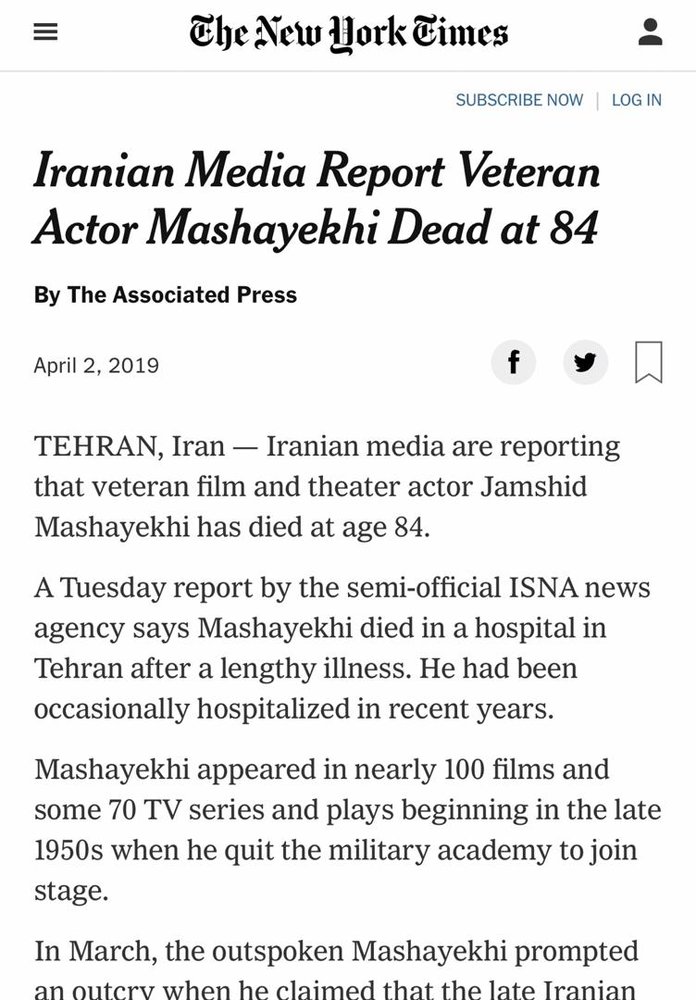 بازتاب خبر درگذشت جمشید مشایخی در رسانههای خارجی / عکس