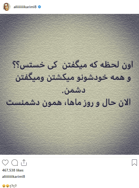 علی کریمی با انتشار در پستی در اینستاگرامش به جمله محمود احمدی نژاد در سخنرانیهایش طعنه زد.
