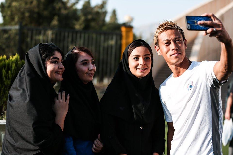 کیوسکه هوندا مربی تیم ملی فوتبال کامبوج پس از آخرین جلسه تمرینی بازیکنان این تیم برای رویارویی با تیم ملی فوتبال ایران در مرحله مقدماتی جام جهانی 2022 ، خارج از محوطه ورزشگاه آزادی تهران با هواداران ایرانی خودش مواجه شد و عکس سلفی گرفت.