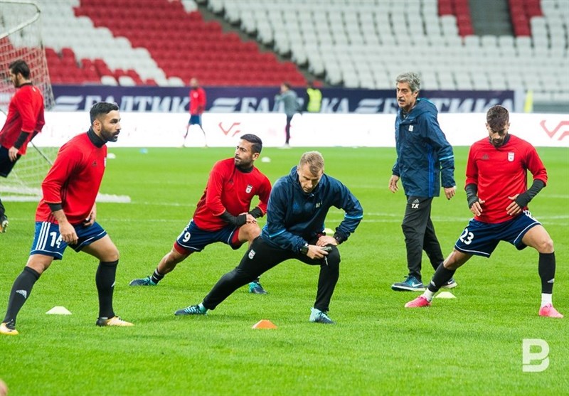 آخرین تمرین آمادهسازی تیم ملی فوتبال کشورمان پیش از دیدار دوستانه مقابل روسیه در ورزشگاه کازان برگزار شد.