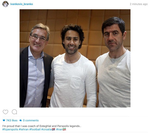 برانکو پس از ملاقات با فرهاد مجیدی در فرودگاه امام خمینی(ره) پستی برای او و کریم باقری منتشر کرد.