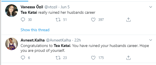 جالب اینجاست کاربران در توئیتر به این اتفاق واکنش نشان داده اند و قریب به اتفاق معتقدند همسر کاتای زندگی شوهرش را نابود کرده است.