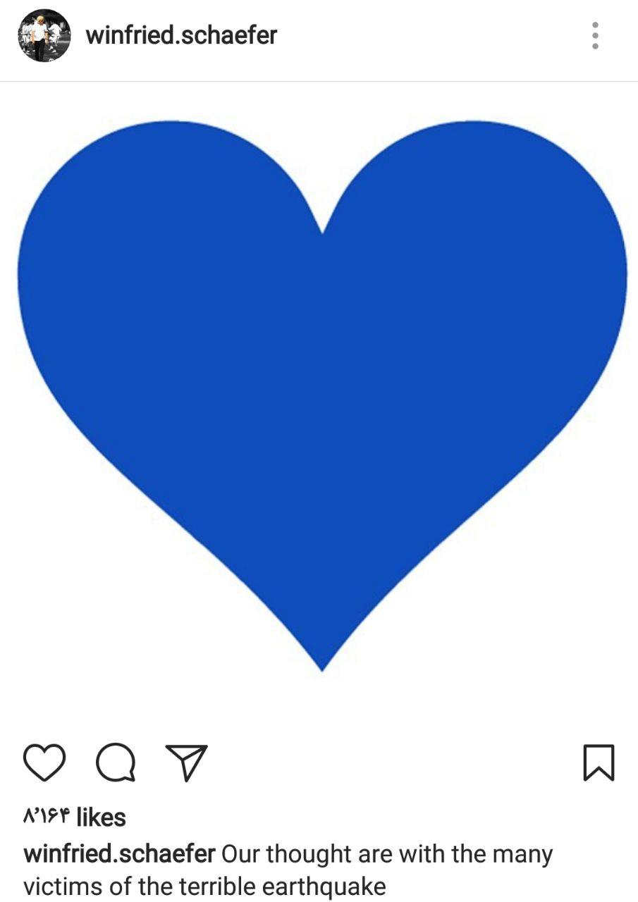 به گزارش خبر فوری ؛ وینفرد شفر سرمربی آلمانی استقلال با انتشار پستی با مردم زلزله زده غرب کشور ابراز همدردی کرد.