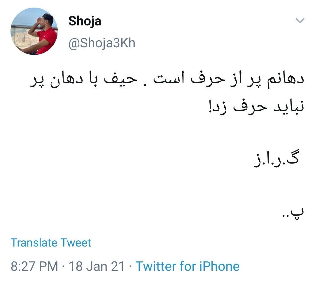 شجاع خلیل زاده که جداییاش از این تیم و پیوستن به باشگاه الریان سروصدای زیادی به پا کرد، پس از این بازی در توییتر نوشت: «دهانم پر از حرف است، اما با دهان پر نمیتوان حرف زد. گ. ر. ا. ز پ...»