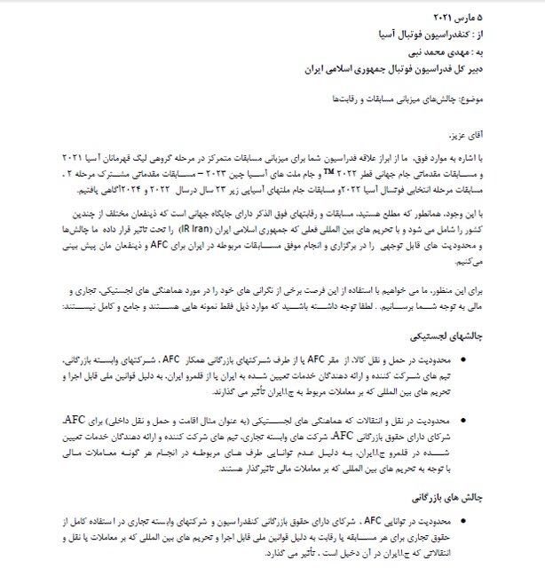 چرا AFC میزبانی لیگ آسیا و مقدماتی جامجهانی را به ایران نداد؟ + متن نامه