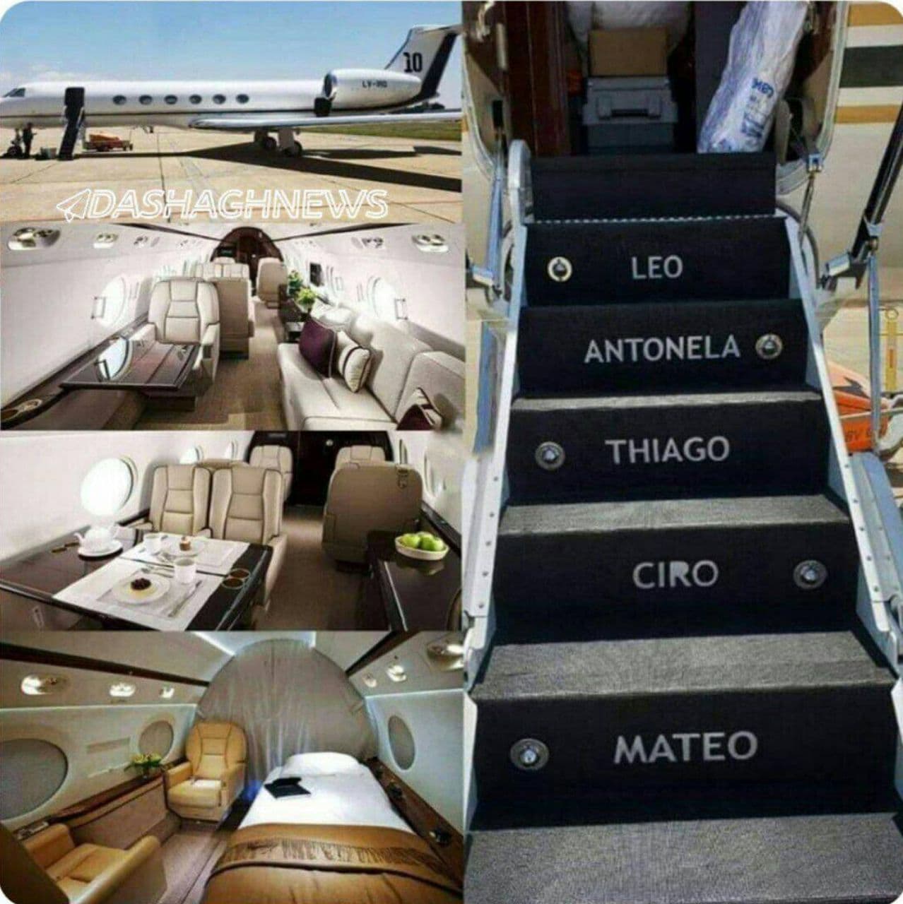 لیونل مسی دارای یک جت شخصی می‌باشد که بر روی پله های آن نام اعضای خانواده اش حکاکی شده است. برای این حکاکی با توجه به جنس به کار رفته در آن، ۱۵ میلیون دلار هزینه صرف شده است.