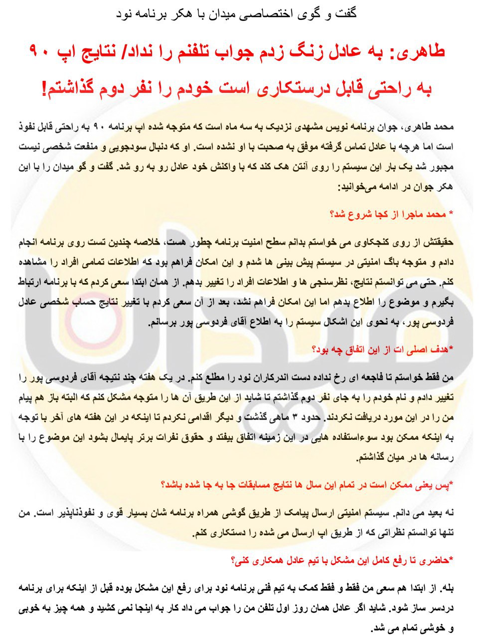هکر مشهدی برنامه ۹۰ را هک کرد