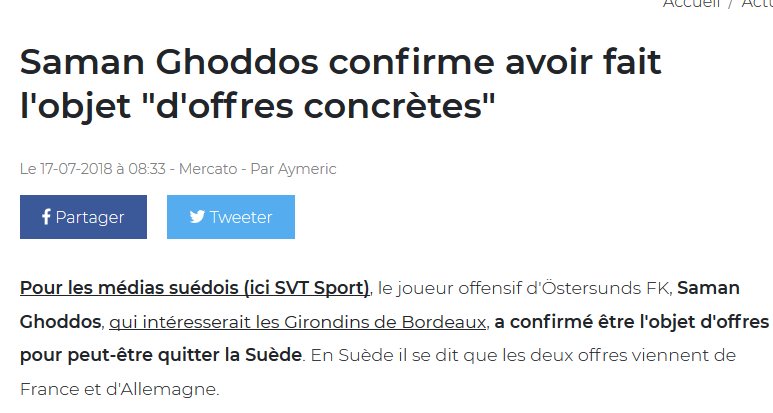سامان قدوس از جمله بازیکنان تیم ملی فوتبال ایران است که بعد از جام جهانی گمانه زنی‌های زیادی پیرامون تیم آینده او مطرح شده است. در روز‌های گذشته خبر پیشنهاد تیم‌های فرانسوی و آلمانی به قدوس منتشر شد و این بازیکن امروز تایید کرد که از تیم بوردو فرانسه پیشنهاد دارد.