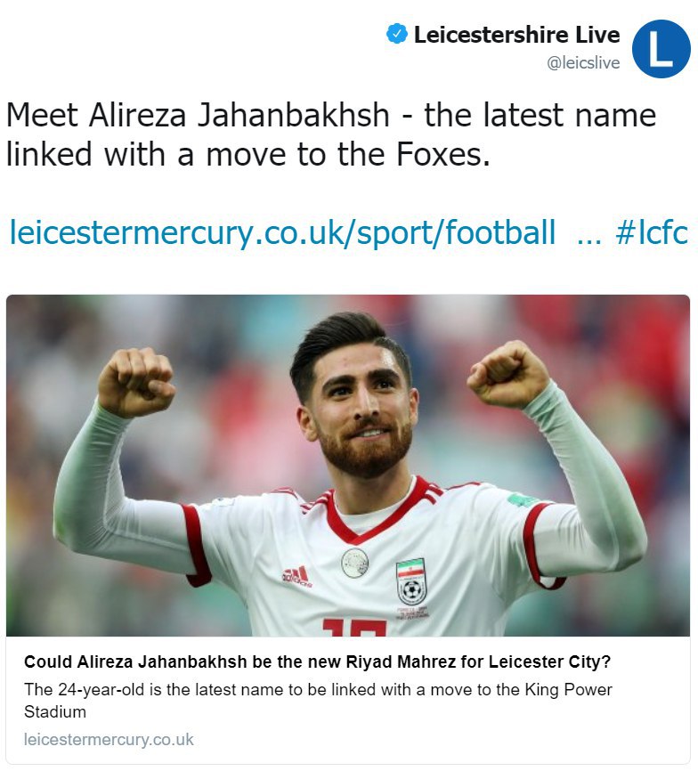یکی از رسانههای رسمی شهر لستر انگلیس، در گزارشی با بررسی عملکرد آقای گل ایرانی فصل گذشته اردیویسه نوشت: آیا علیرضا جهانبخش میتواند ریاض محرز جدید برای لسترسیتی شود؟