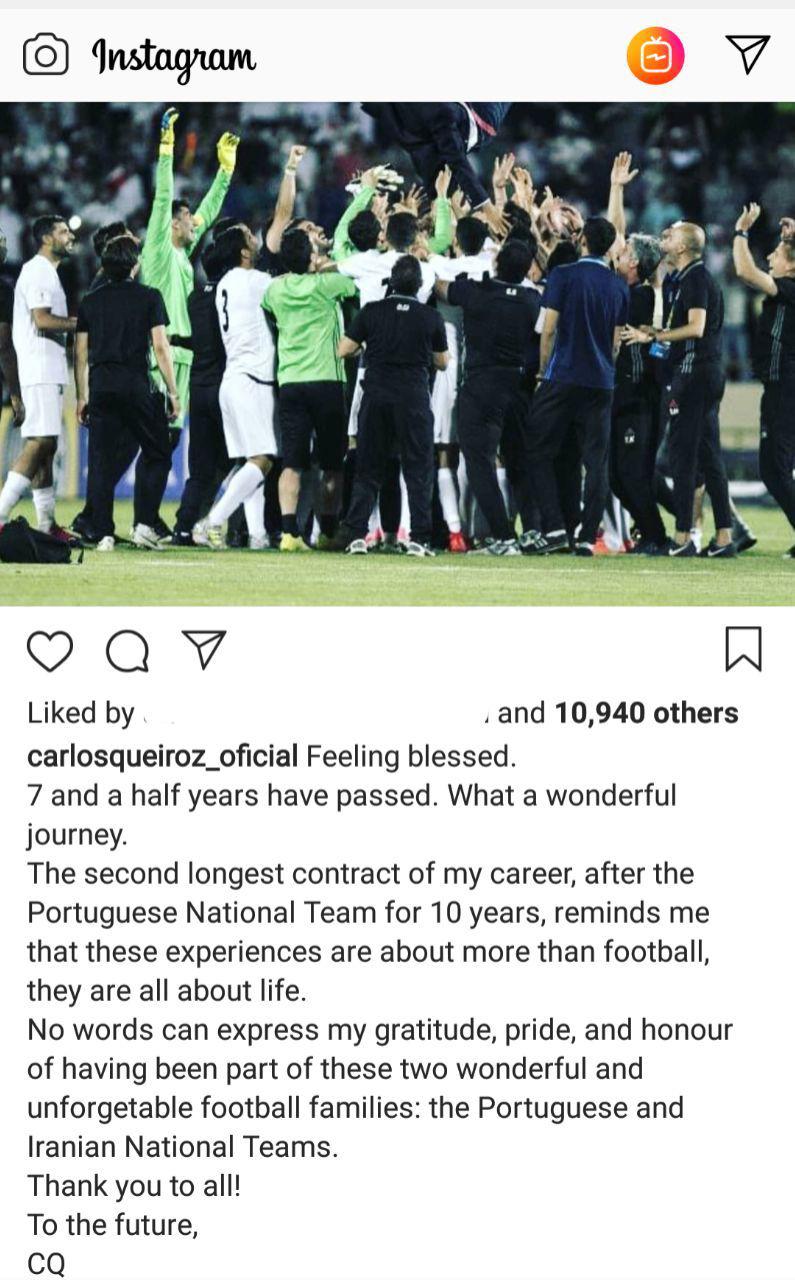 سرمربی پرتغالی تیم ملی دقایقی پیش در صفحه شخصی خود در اینستاگرام بیانیهای منتشر کرده است.