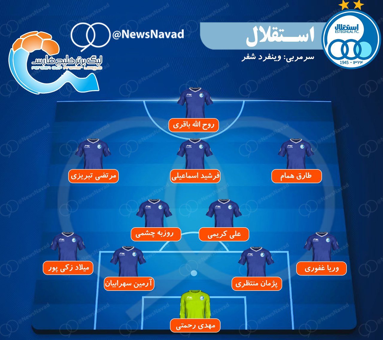 ترکیب استقلال در بازی با پرسپولیس