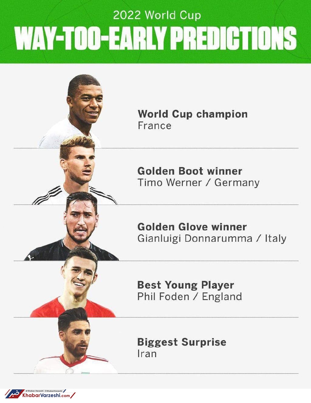 این رسانه، جام قهرمانی را در دستان امباپه تصور میکند و کفش طلای این رقابتها را از آن تیبو ورنر آلمانی میداند. همچنین پیشبینی میکند دونارومای ایتالیایی بهترین دروازبان حاضر در ضیافت جهانی فوتبال در قطر باشد و بهترین بازیکن جوان جام جهانی را فیل فودن انگلیسی میداند.