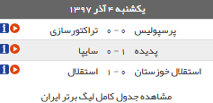 نتایج هفته سیزدهم لیگ برتر به شرح زیر است: