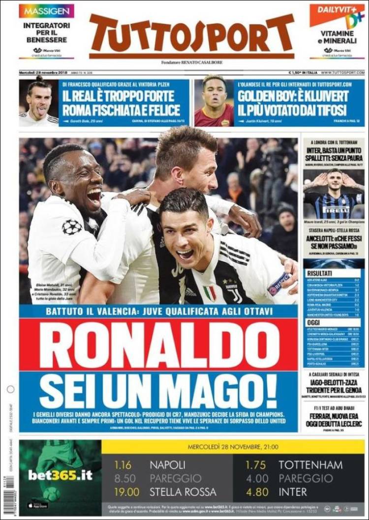 کریستیانو رونالدو بازهم درخشید و یک پاسگل ارسال کرد تا خاطره تلخ اخراج در بازی رفت برابر والنسیا را فراموش کند. یووه با گلی که مانژو زد خفاشها را شکست داد و به مرحله بعد رسید.