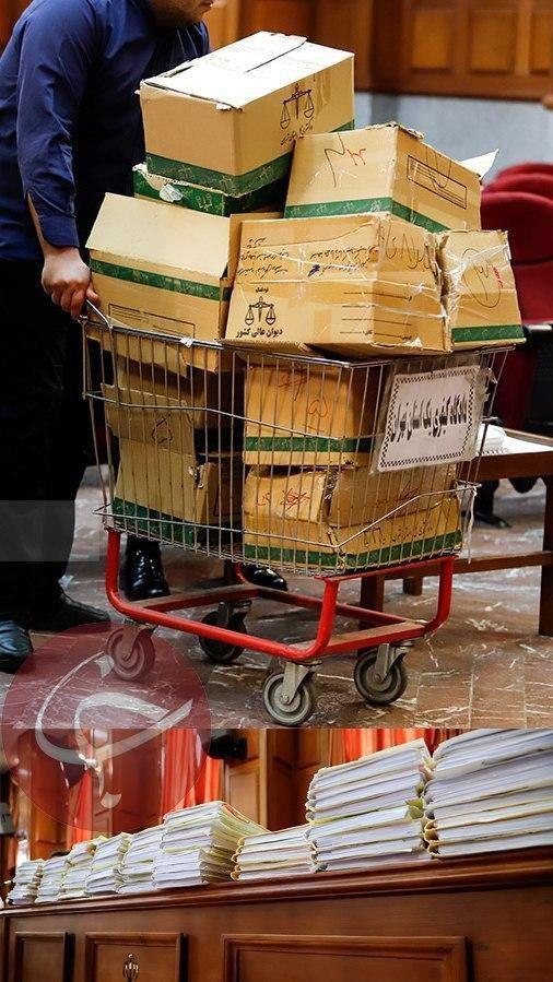 تصویری از حجم پرونده اکبر طبری در دادگاه امروز