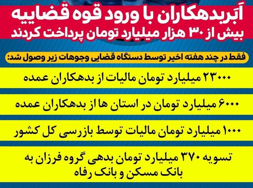 ابر بدهکاران با ورود قوه قضاییه بیش از ۳۰ هزار میلیارد تومان پرداخت کردند