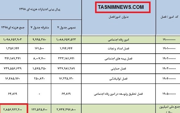 بر اساس تازه ترین اطلاعات از ضوابط تدوین لایحه بودجه سال 98، سقف اعتبارات هزینه بودجه برای سال آتی 285.692.220 تومان در نظر گرفته شده است.