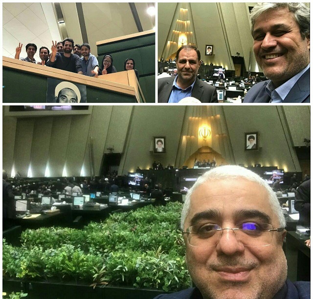 محمدعلیوکیلی، تاجگردون، زارع و جعفرزاده ایمن آبادی دقایقی پیش با انتشار عکس سلفی خود از وضعیت آرام در صحن علنی مجلس خبر دادند.