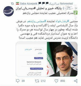 بیشتر بخوانید : مدرک تحصیلی عجیب آقای نماینده