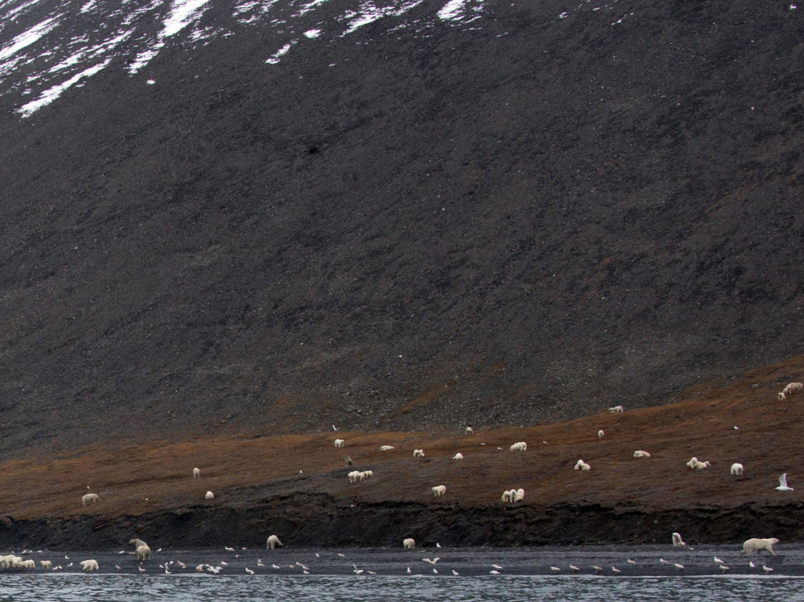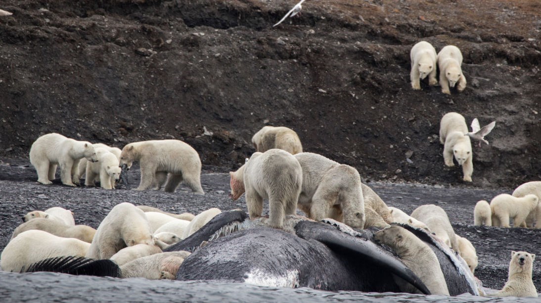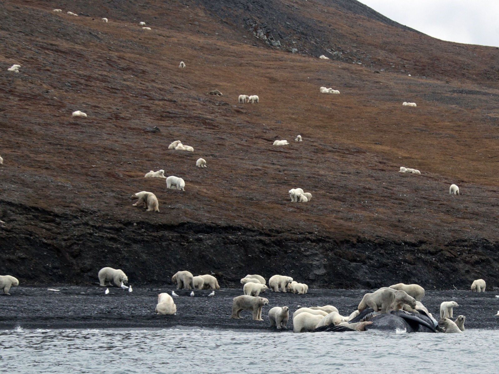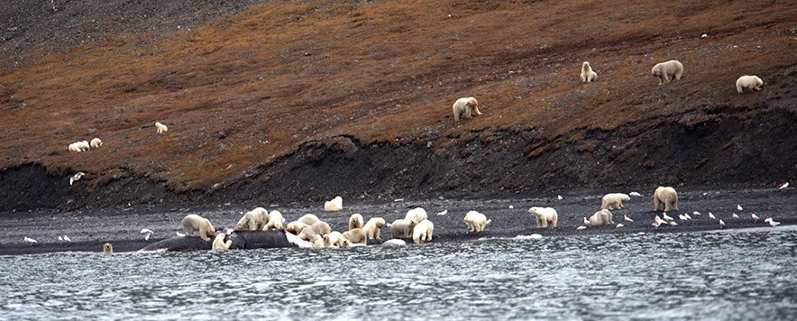 به گفته کارشناسان حدود 200 قلاده خرس قطبی برای خوردن لاشه یک نهنگ در ساحل این جزیره نزدیک به قطب شمال جمه شده بودند.