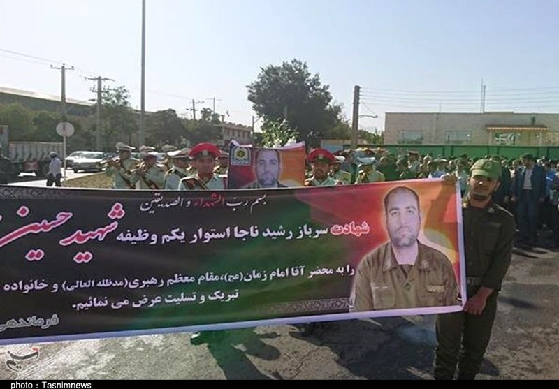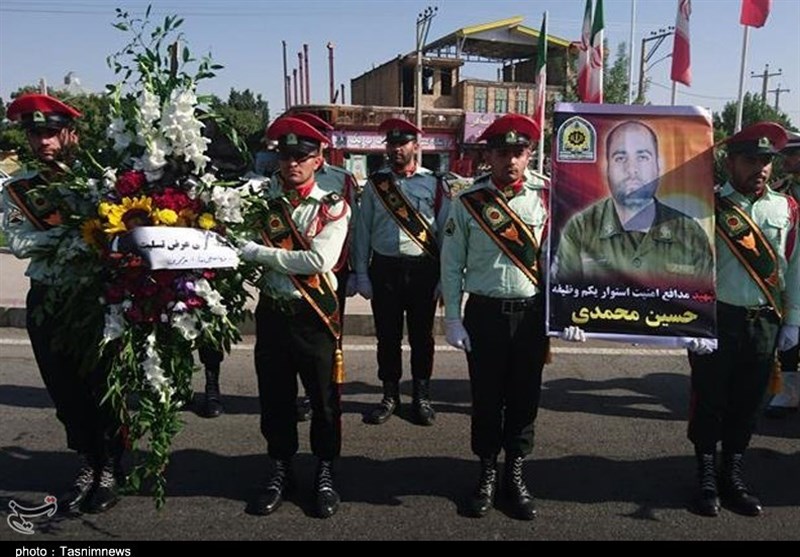 پیکر مطهر سرباز شهید ناجا "حسین محمدی " که سه شنبه شب در حین عملیات و خدمت به شهادت رسید صبح امروز در شهرستان خمین تشییع شد.