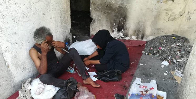 از خانه که به مسجد می‌رویم، می‌بینیم که کوچه پشت مسجد به پاتوق زنان و مردان معتادی تبدیل شده است که درحال تزریق و استعمال مواد هستند. کوچه‌های محله پر از سرنگ معتادان است و برای اجابت مزاج هم داخل همین کوچه‌ها می‌روند و بوی تعفن به مشام می‌رسد.