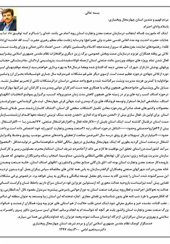 رئیس سازمان صنعت، معدن و تجارت چهارمحال و بختیاری استعفا کرد