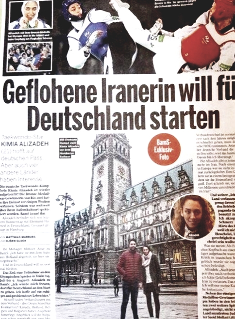 کیمیا علیزاده مدال آور کاروان ایران در المپیک ریو که به تازگی از ایران مهاجرت کرده، به نوشته چند رسانه آلمانی، قرار است در المپیک با پرچم آلمان شرکت کند.