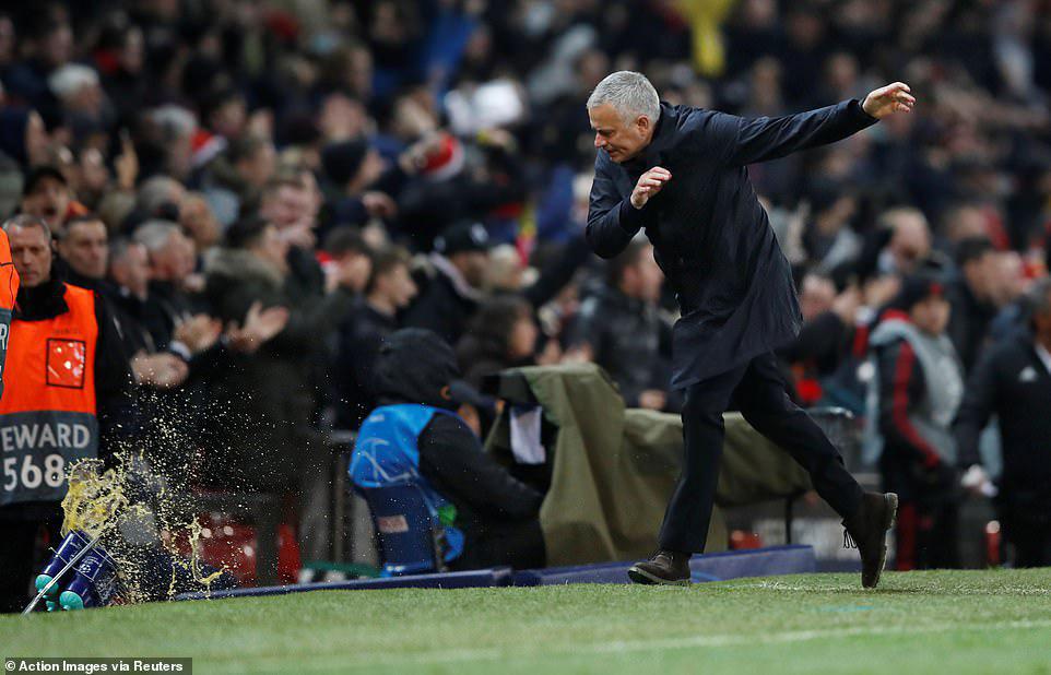 مورینیو که به شدت از این پیروزی تیمش خوشحال بود، به سمت جعبه بطری های آب کنار زمین رفت و پس از آنکه یکی از آنها را نقش زمین کرد، دیگری را محکم به زمین کوبید تا باعث تعجب تماشاگران و نیمکت نشینان خودی شود.