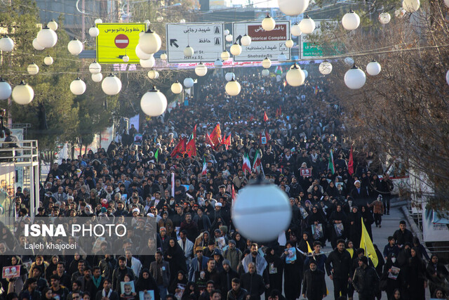 با جمعیت همقدم می شوم و آقای سالمندی که چفیه بر گردن انداخته هکلام می شوم که در پاسخ به سوالم می گوید:برای کشورمان و به خاطر سردار سلیمانی امروز آمده ایم که جانش را فدا کرد و کشور، مقام معظم رهبری و ملت را سرافراز کرد.