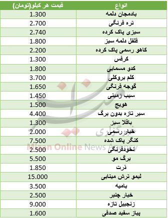 قیمت انواع فرنگی جات در میادین میوه و تره بار به شرح زیر است:
